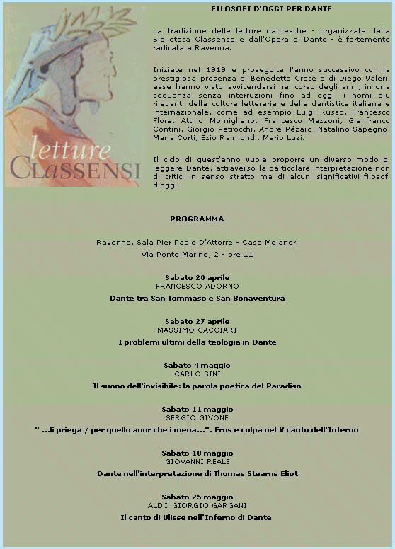 A cura del Comune di Ravenna - Assessorato alla Cultura, Biblioteca Classense, Opera di Dante.